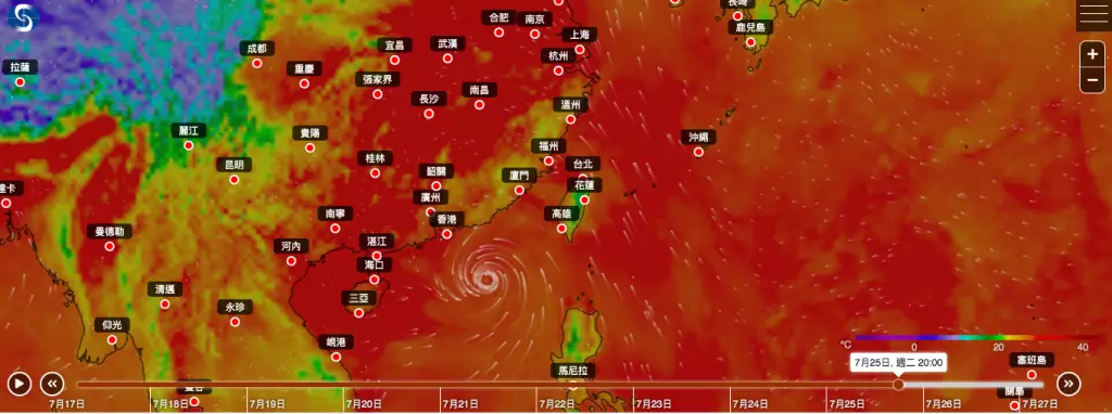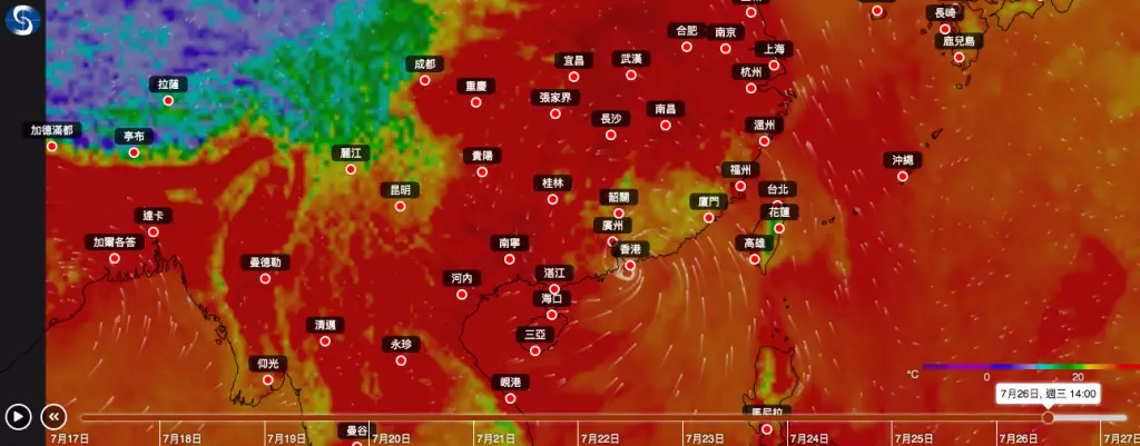 根據天文台地球天氣顯示,該熱帶氣旋周日(23日)闖入香港800公里範圍,周一(24日)下午2時直入本港400公里範圍,風速或達每小時超過80公里,周三(26日)預計將非常接近香港。