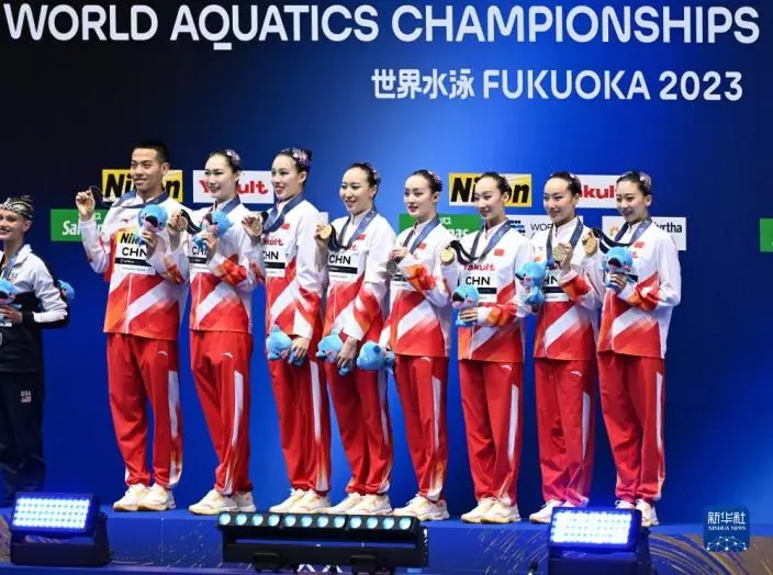 7月17日,在日本福岡舉行的2023年世界游泳錦標賽花樣游泳集體技巧自選決賽中,中國隊以238.0033分的成績獲得冠軍。
