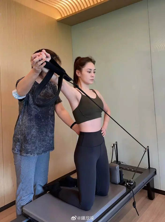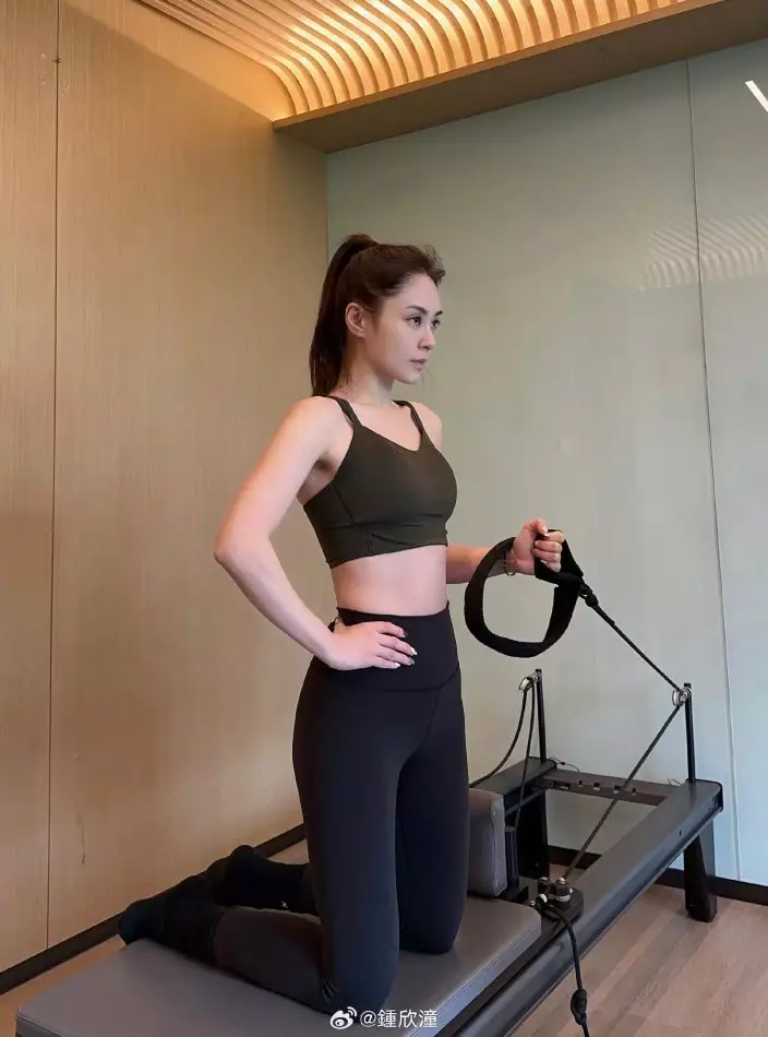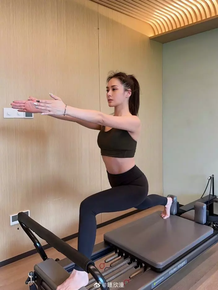 鍾欣潼(阿嬌)勤練普拉提防身型翻脹。(微博圖)