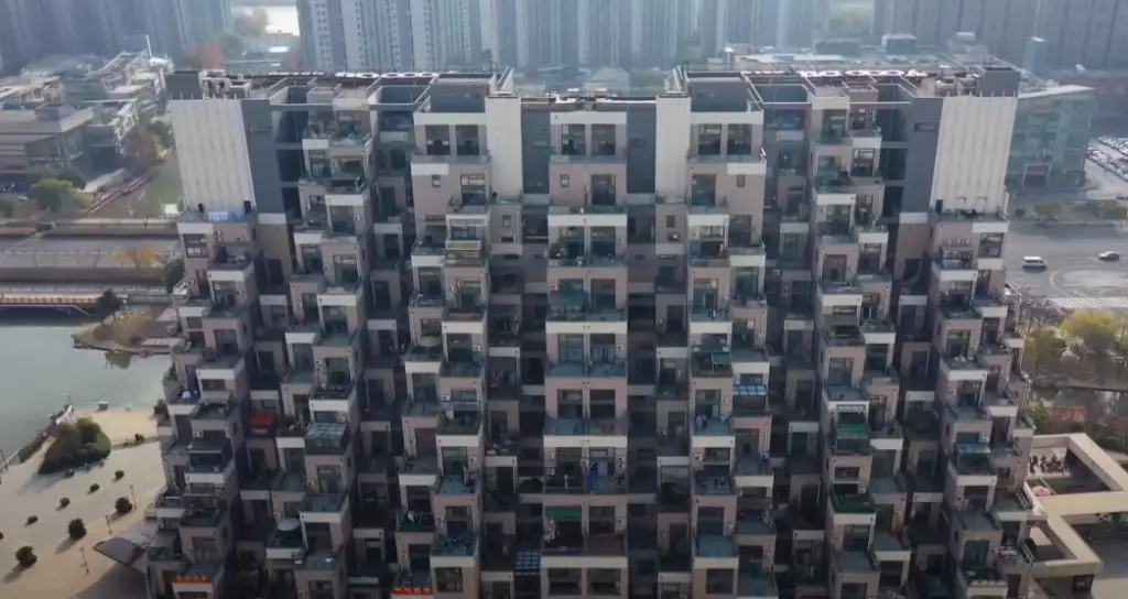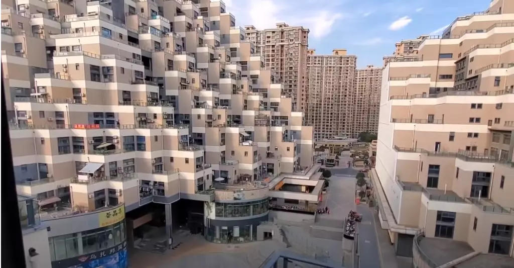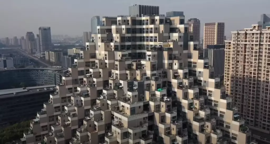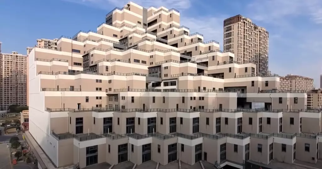 該建築於2015年落成,底層是鋪位,樓上則是住宅,看起來猶如搭積木一樣層層疊疊,在某些層面上,大樓的確符合設計師初衷,「希望所有住戶都能曬到太陽,感到溫暖」,但是因裡面沒有搭建爐頭等設備,加上要和樓下商家付同價位的電費,所以引起許多住戶的不滿。