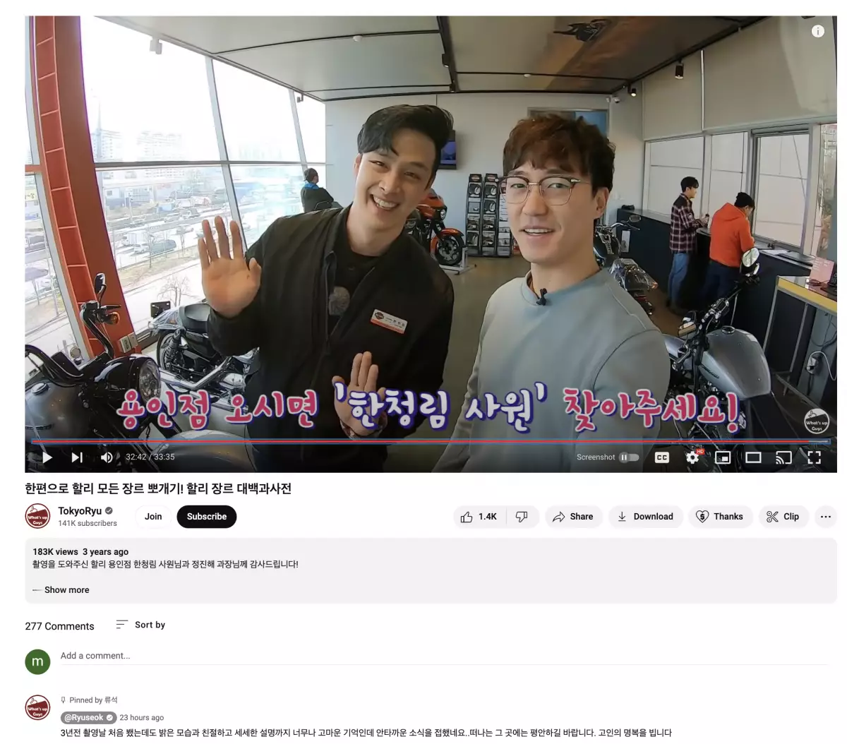 3年前韓青林以電單車銷售員工身份為Youtuber做介紹(影片截圖)