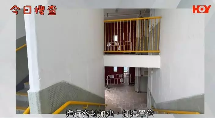 房署在舊屋邨長型大廈走廊通風位密封加建,相當創新。(《一線搜查》影片截圖)