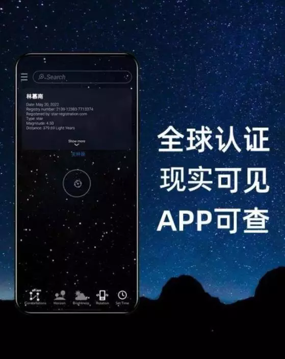 有商家的宣傳海報上宣稱「美國國家宇航局官網永久登記」,「全球認證 現實可見 APP可查」,顧客付款後,只能選星座,商家會在星座中隨機選擇一顆星星為顧客命名。之後,顧客可以在商家提供的客戶端中輸入編碼,查看屬於自己的星星。