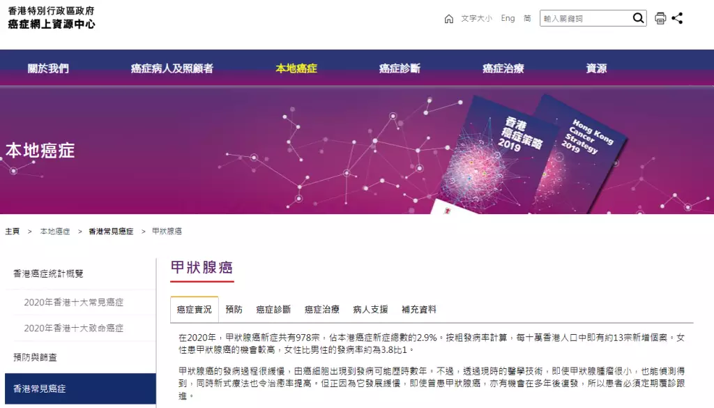 癌症網上資源中心有關甲狀腺癌資訊。(網上圖片@癌症網上資源中心官網)