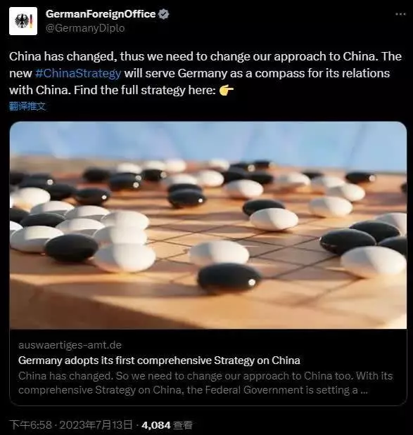 德國外交部發布「中國戰略」。Twitter截圖