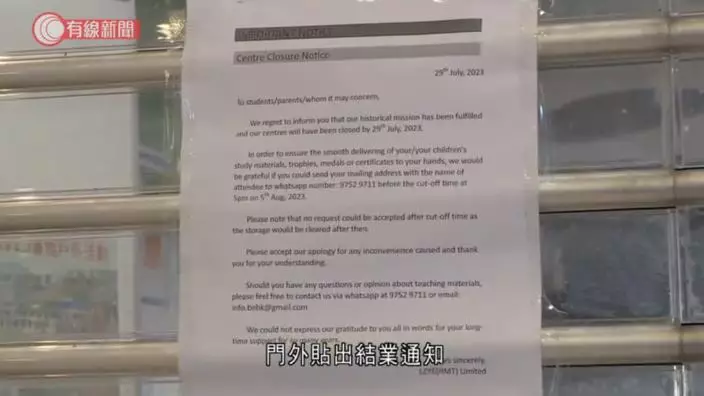 翹英教育宣布旗下5間補習中心全線結業。港島東立法會議員梁熙31日表示,目前收到約10名家長求助,每人被拖欠至少約1萬元學費。