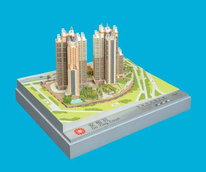 「出售居者有其屋計劃單位2023」七月三十一日開始接受購買申請。圖示該計劃的新發展項目安楹苑的模型。(政府新聞網圖片)