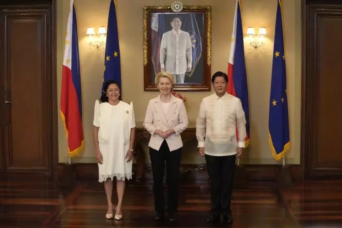 歐盟委員會主席馮德萊恩到訪菲律賓,與總統小馬可斯會談。AP圖片