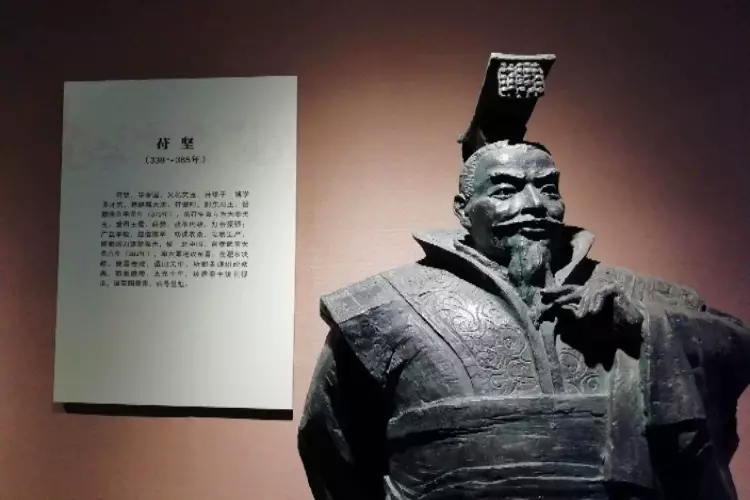 符堅初封東海王,後發動政變推翻堂兄苻生而即位。在位期間重用漢人王猛,並成功統一北方。苻堅於383年發動戰爭意圖消滅東晉,史稱淝水之戰,但最終敗給北府兵,國家亦因此陷入混亂。各民族紛紛叛變獨立,苻堅終遭羌人姚萇殺害。(網上圖片)