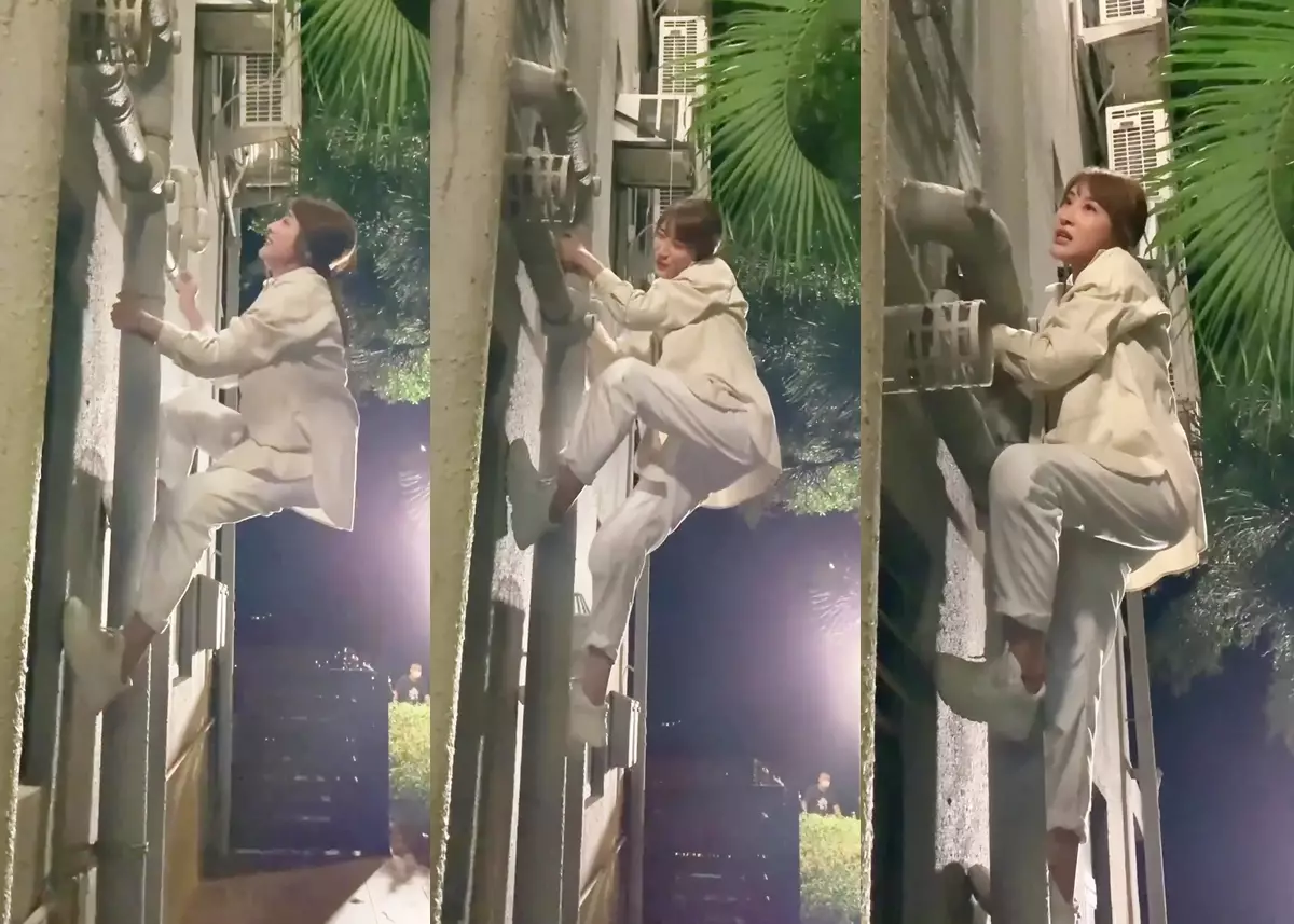 薇薇喺社交網上載爬水渠片段,大晒力的表現!