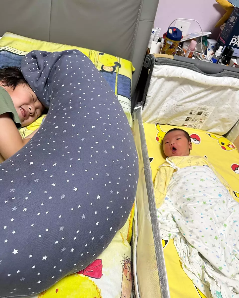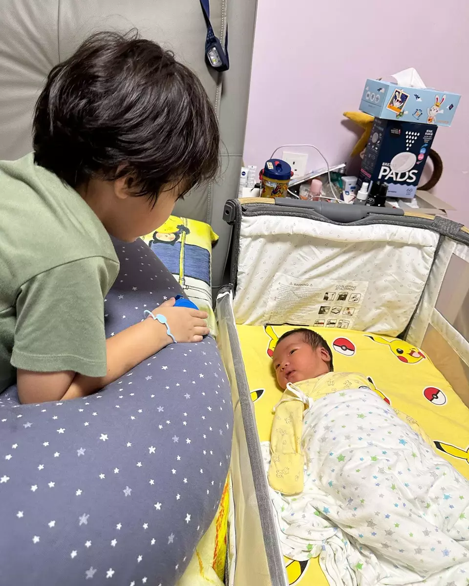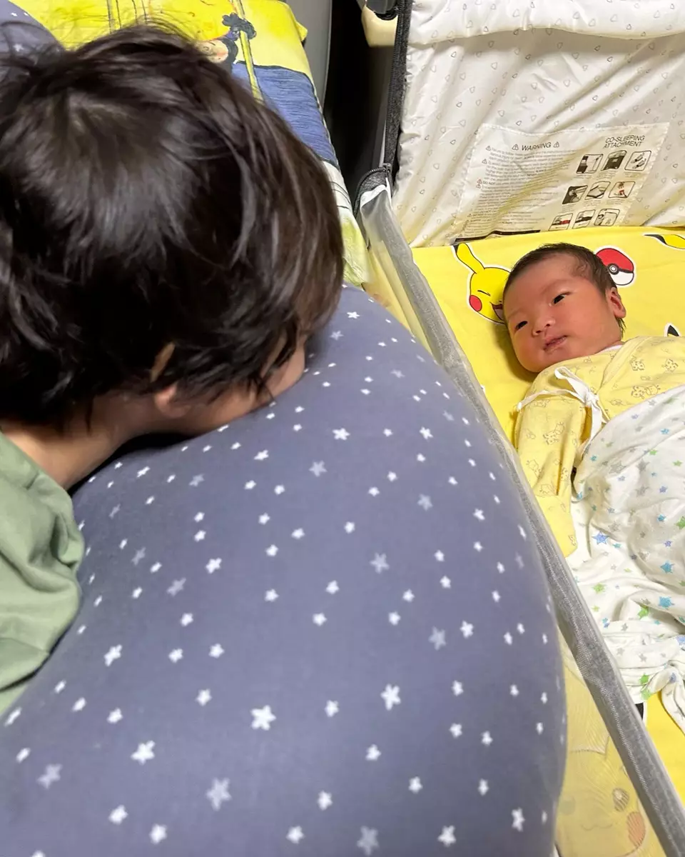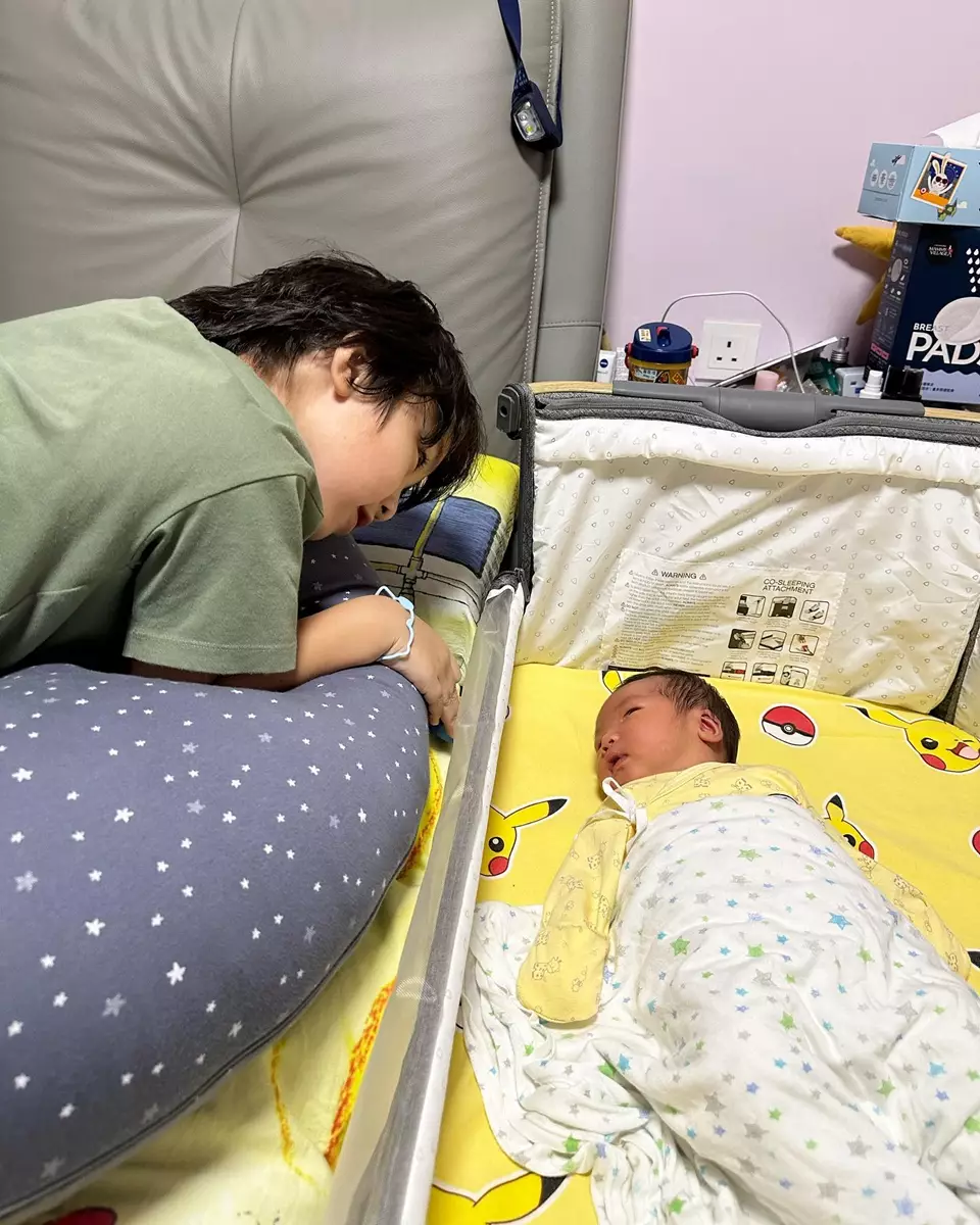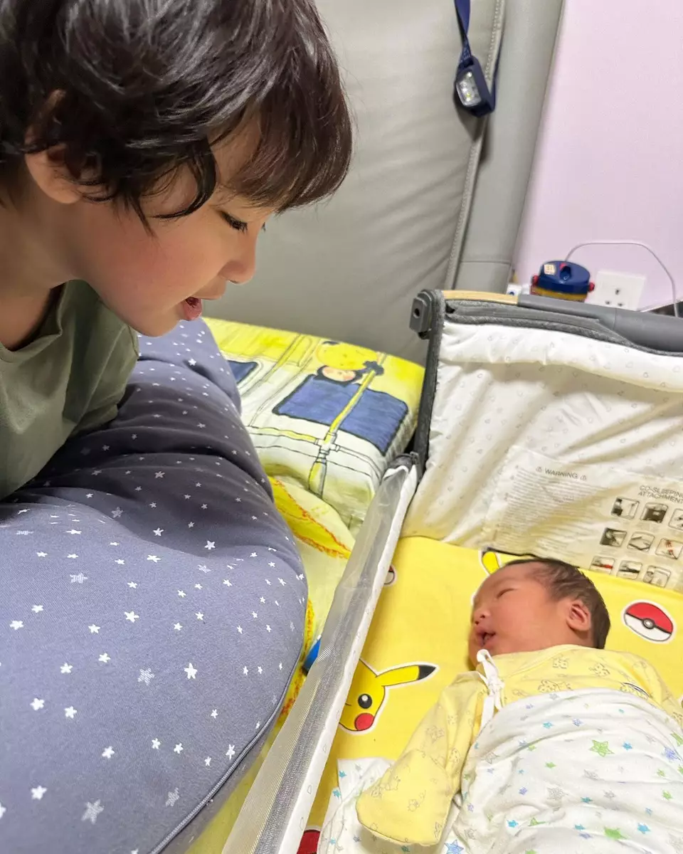 孫慧雪剛誕下第二胎,大家都替她開心,有子萬事足的雪雪繼日前公開產房生B片,令大家大受感動外,稍早前還在社交平台分享了兩個兒子的相片,照片中的哥哥以好奇的目光望著細佬,細佬同時又望著哥哥,兩兄弟深情對望,畫面超有愛,看在眼內的雪雪深被感動。