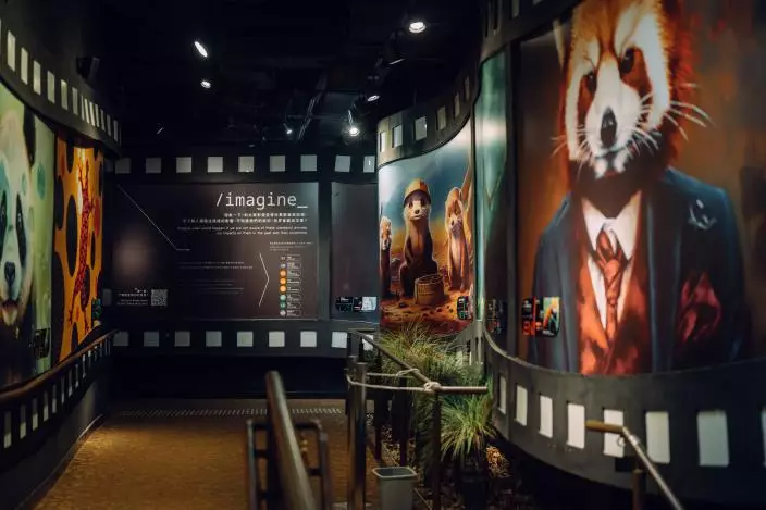 訪客可在藝術長廊欣賞一系列由 AI 繪成的動物畫作,主角包括已滅絕的西部黑犀牛、極危的靛冠噪鶥等。展覽專區介紹了海洋公園對生態保護的承諾,以及專業動物團隊參與的保育工作,包括繁殖、救援、療養、放歸以及持續跟進調查本港水域的鯨豚擱淺個案。