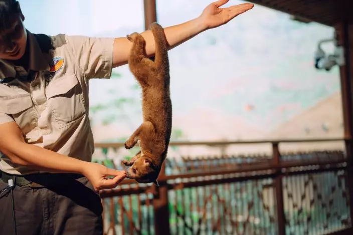 走過藝術長廊和展覽專區的教育之旅,就會見到公園最萌的動物大使!前來展館與「慢活」家族二趾樹懶及球蟒見面打招呼,記得別錯過每日下午 3 時正舉行的「與樹懶會面」環節,護理員將會與大家分享樹懶的有趣生活習性。