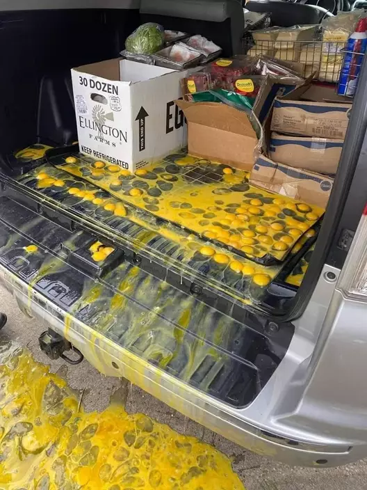 該網民於facebook群組發文貼出照片,配字寫道「完蛋了」。只見一輛打開車尾箱的客貨車內滿布大量蛋黃和蛋液,更溢出車外至地面,十分難清理。樓主未有說明為何會發生如此災難事件,有網民猜測「感覺是送貨中發生車禍」,有人笑言「像推銀機」、「這時候如果大太陽就可以馬上食用了」、「當你覺得今天很不幸時請看看樓主」。