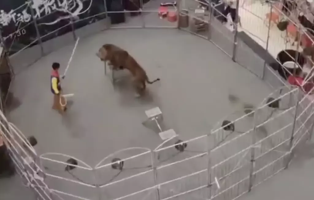 記得小時候還經常會看到動物表演,但隨著各種意識的崛起,這種不人道的方式已經越來越少,但內地一商場竟有獅子、熊等動物表演,而且現場措施極為簡陋,欄杆高度完全不夠,而且也只是隨意地固定在周邊物體上,萬一動物發飆跑出來那就完蛋!