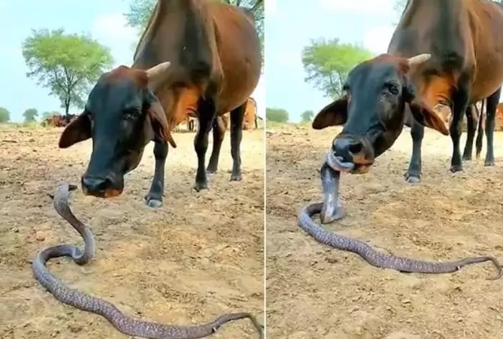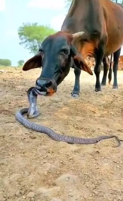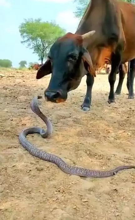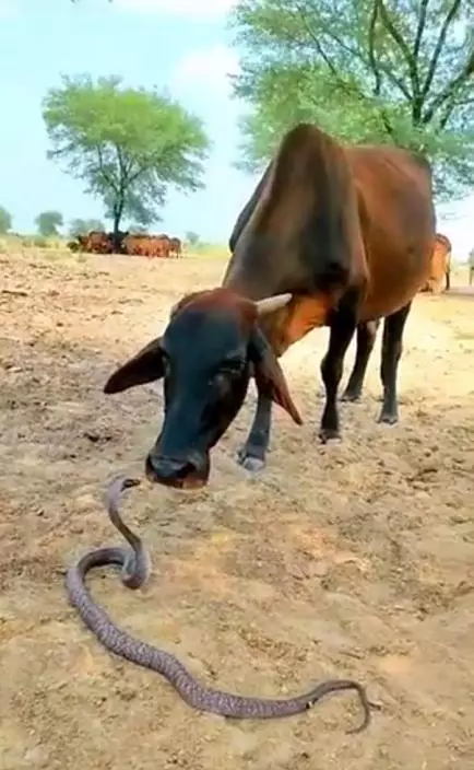 蛇的警覺性非常高,看見異物時可能先發制人攻擊,或者擺出戰鬥姿態,企圖嚇走對方。不過,印度上演一段令人驚奇、牛與蛇「輕觸」像是互相問好的片段。