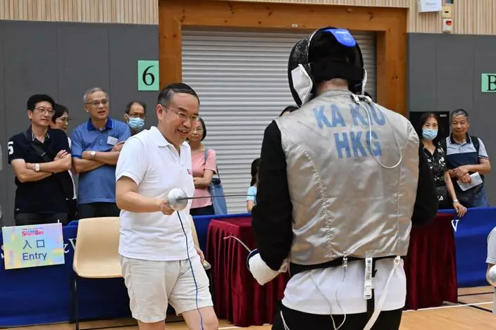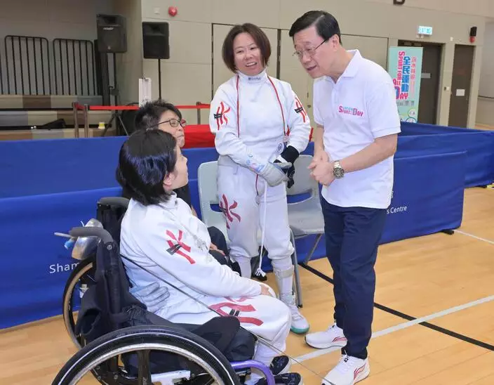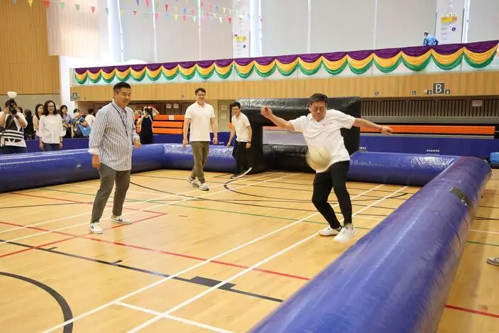 康文署6日舉行全民運動日,除轄下大部分康體設施免費開放外,另於18區舉行免費康體活動,市民可憑活動券入場。行政長官李家超、文化體育及旅遊局局長楊潤雄等官員下午就到訪深水埗體育館參與活動。