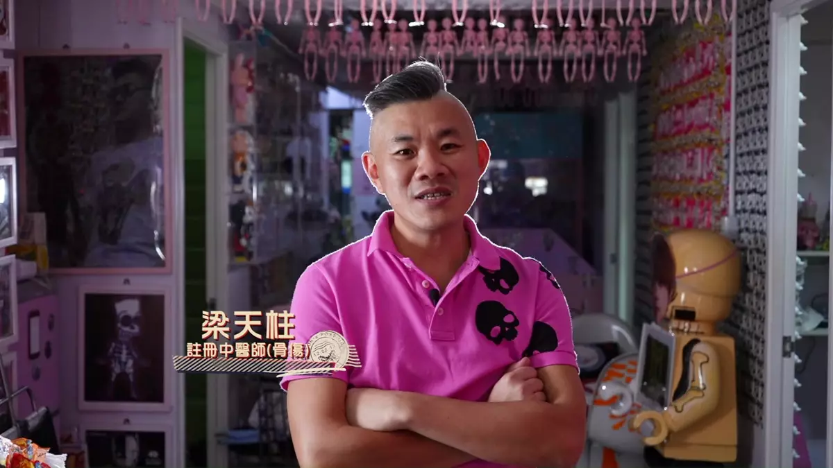 另一間由「骨二代」梁天柱師傅經營的跌打館,則以傳統揉合新潮見稱,保留著上居下舖舊香港特色的這所店舖,以梁師傅女兒最愛粉紅色作主打,並以充滿港式情懷的擺設及設計作裝潢,支支對此亦讚不絕口:「完全Feel到店主對香港嘅愛,仲有啲電影經典對白同橋段可以喺裝修度見到。」雖然裝修及為人新潮有創意,但梁師傅與李師傅一樣有著傳統魂,除凡事均以愛女為出發點,對自小長大的深水埗區及跌打事業亦有著情意結:「我自小夢想就係將跌打醫館以遊樂形式去經營,我希望到死都係做緊呢行。」
