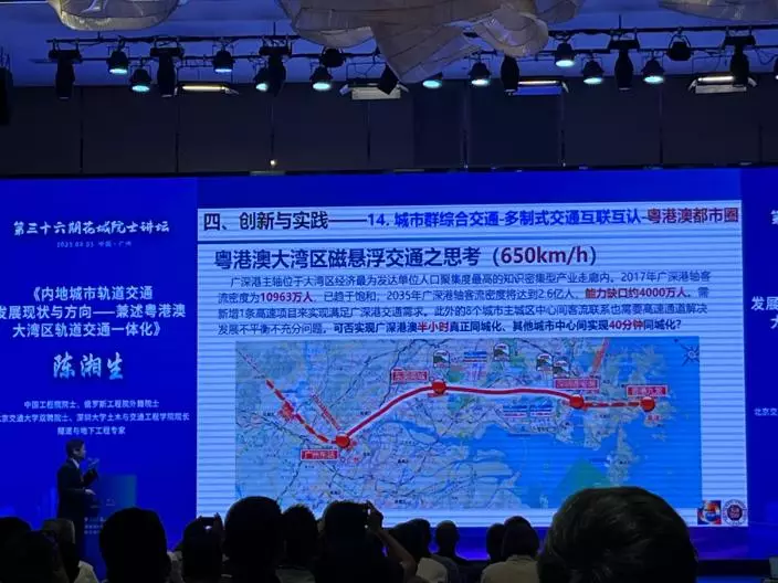 陳湘生分享了關於粵港澳大灣區磁懸浮線路方案。廣州日報官網圖片