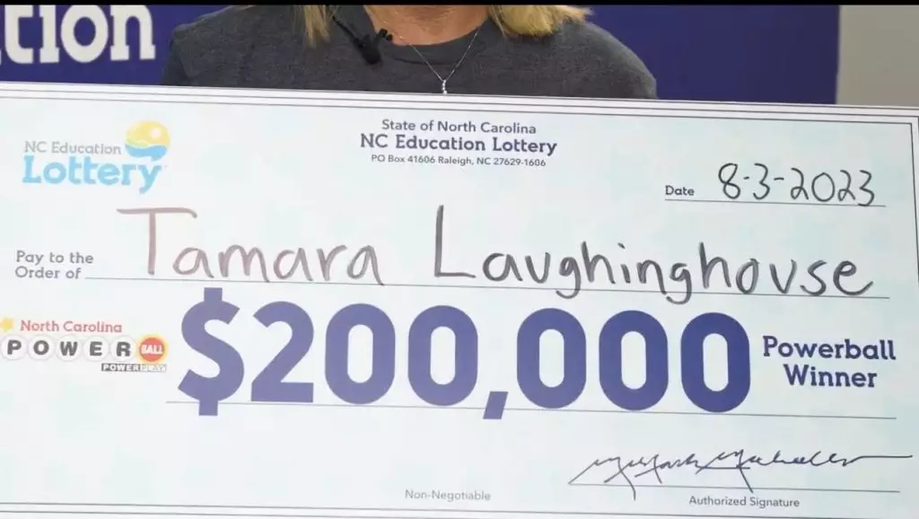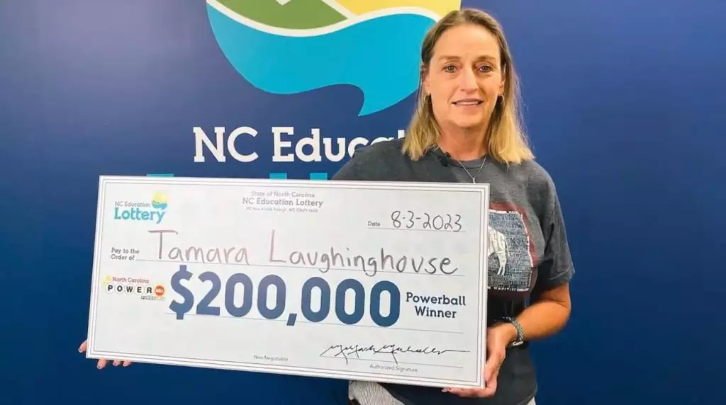 日前,居住於美國北卡羅來納州的穆爾斯維爾的1位名叫塔瑪拉·Laughinghouse的女子,與家人在懷俄明州度假時,正在享受咖啡時,父親剛剛好看到強力球中獎號碼,並唸出數字,塔瑪拉聽後隨即發現該組號碼正是她所選擇的。