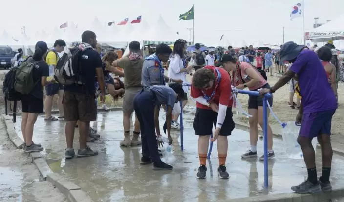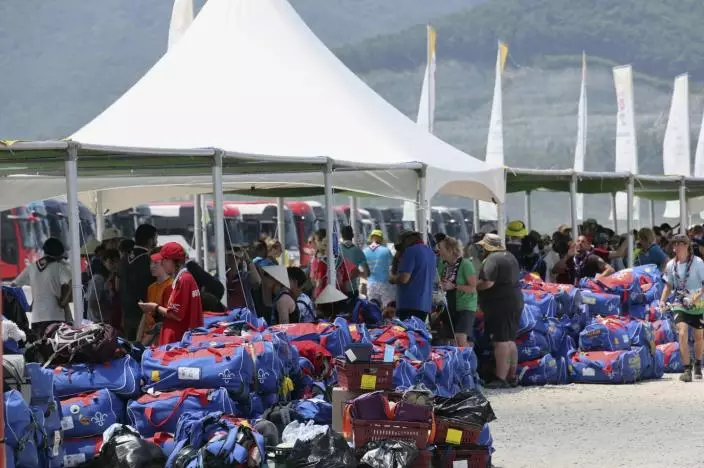 南韓世界童軍大露營,因預料受風暴卡努影響提早結束,約3萬6000名參加者陸續離營。