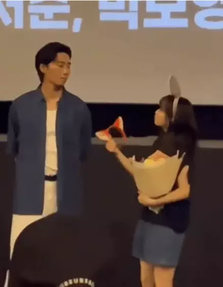 朴敘俊在舞台問候活動上的舉動掀起網友熱議(lotteent.movie IG圖片)