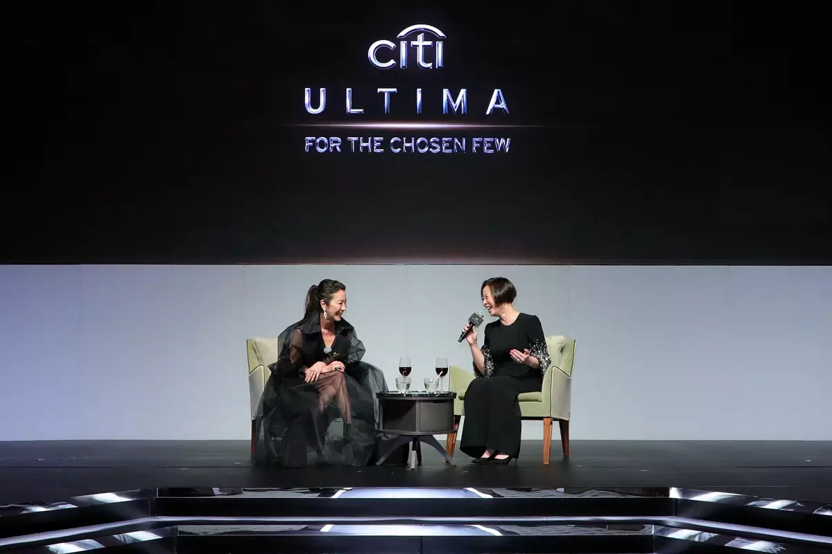 奧斯卡影后楊紫瓊出席Citi ULTIMA晚宴與花旗環球財富亞洲區主管伍燕儀,探討一個完全平等的理想世界。