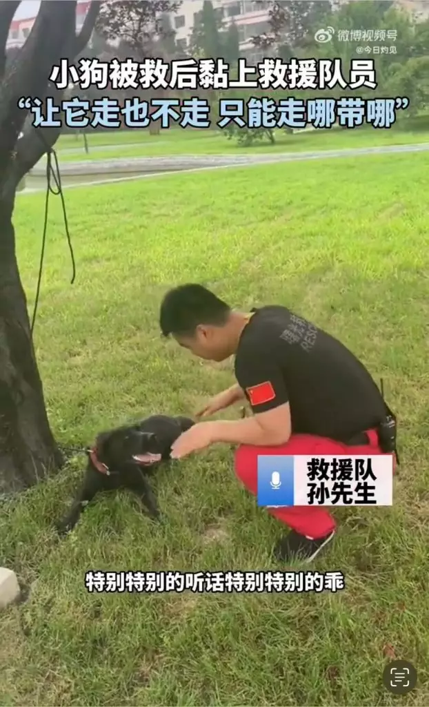 萬物皆有靈!內地1隻黑狗因暴雨被困於家中大門上,搜救隊員見到後將其救下,此後聰明的狗狗竟用自己的行動去報恩……