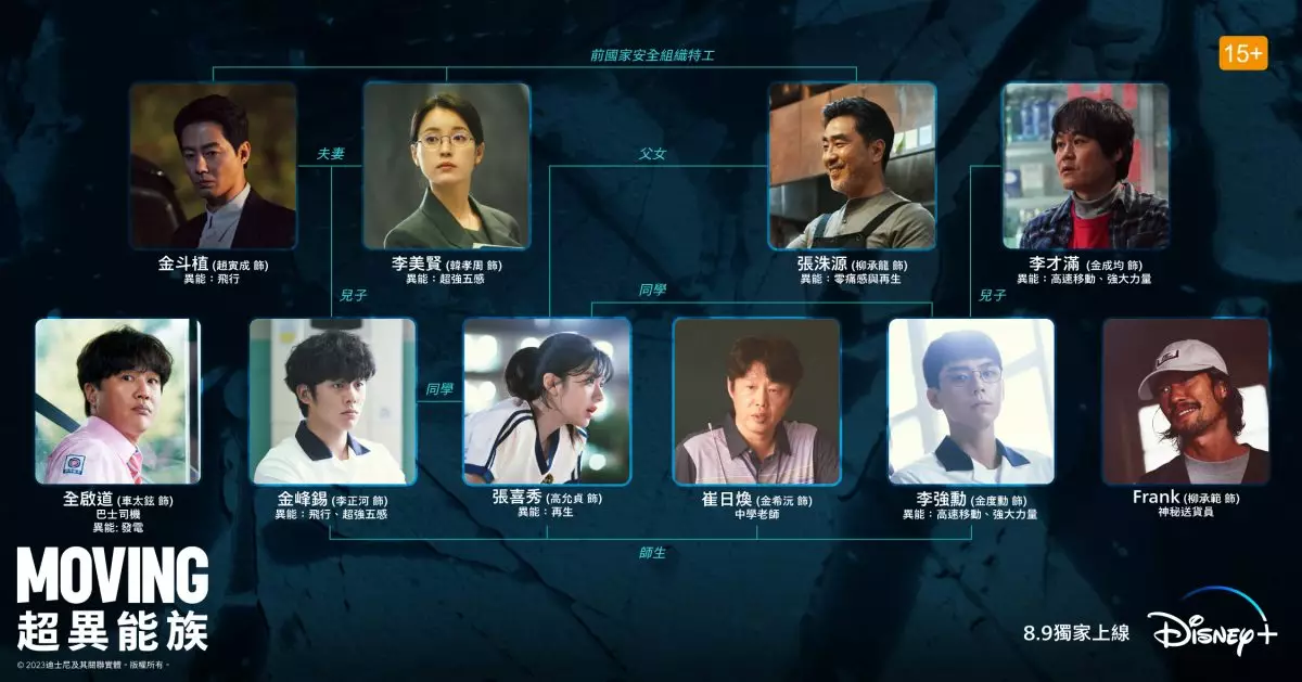 《Moving超異能族》主要角色關係圖(Disney+提供圖片)