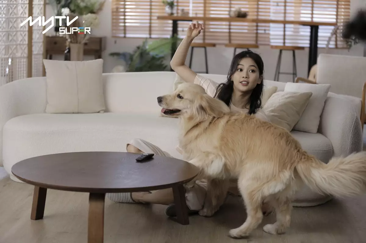 郭柏妍(Rosita)近日演出myTV SUPER智能電視版的宣傳片,與曾參加《超級毛特兒大賽》的金毛尋回犬Silly上演對手戲,是出道以來首度與寵物結緣。
