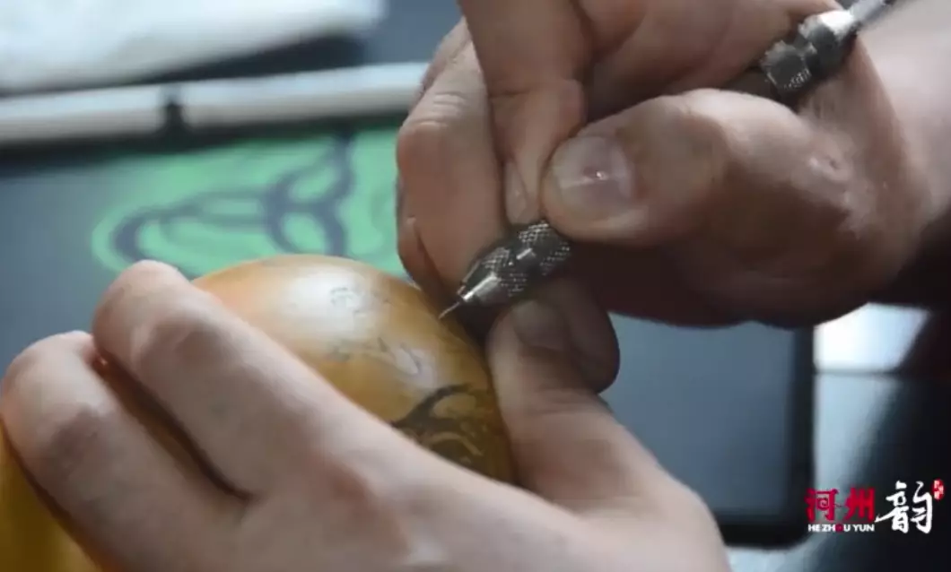 受到哥哥的影響,白正兵趁有時哥哥忘記鎖抽屜時,拿哥哥的刻針偷著在葫蘆上刻。一來二去,倒也雕得像模像樣,一個葫蘆賣了一塊七,當時還是20世紀90年代,對白正兵來說,這已經是一筆巨款了,看到白正兵的天分,哥哥開始主動教他雕刻葫蘆的工藝,白正兵還拿自己賣葫蘆的錢買了一套雕刻工具,從那個時候他就愛上雕刻葫蘆了。