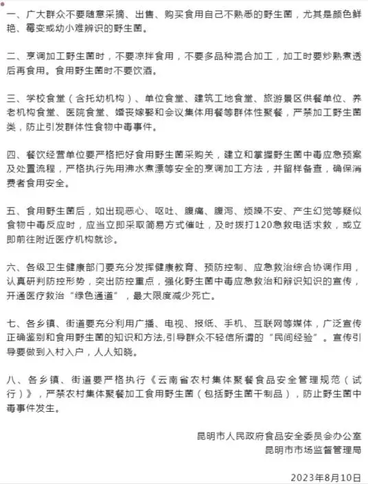 野生菌中毒防控預警公告(昆明國家高新區發佈微博圖片)