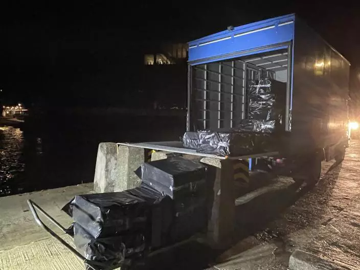 海關12日凌晨在赤柱聖士提反灣碼頭,發現有數名可疑男子從船上將大量紙箱搬運到岸邊一輛可疑貨車,懷疑正進行走私活動。海關人員上前截查時,數名懷疑涉案男子立即跳海逃走,最終5名逃走男子被截獲及拘捕。經檢查後,海關人員在貨車上及碼頭附近位置,檢獲該批懷疑私煙,並扣查該懷疑涉案貨車。