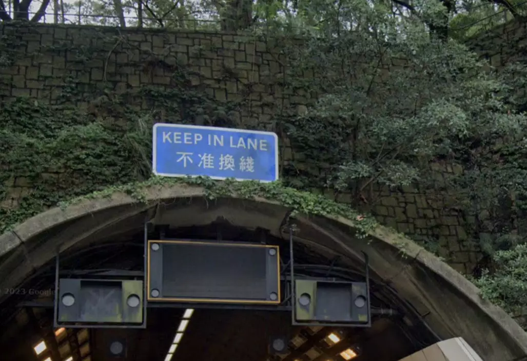 香港大部分隧道路段均為雙白線,司機在隧道內不准換綫。(Google Map圖片)
