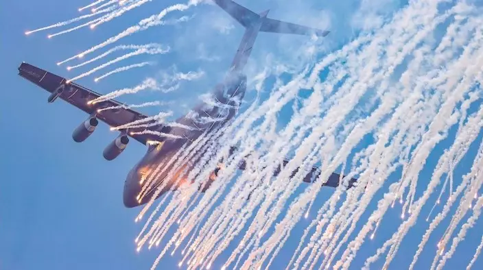現場視頻顯示,大量干擾彈從運油-20的不同部位釋放,場面極其震撼。在實戰中,運油-20可以通過釋放干擾彈的方式避免遭遇地面火力打擊,提高戰場生存率。