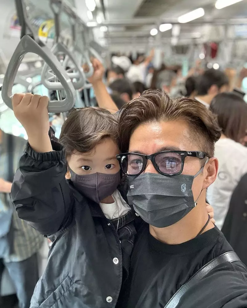 Jaco跟爸爸山聰就倒模出來,眼仔碌碌好討喜。爸爸山聰身為潮流達人,亦幫囝囝襯衫。當天山聰穿了白色長袖Tee,配卡其色長褲,囝囝Jaco跟他同樣穿搭,但山聰的鴛鴦波鞋更有巧思。山聰還抱起囝囝拍照,不少網民都大讚他們父子有型,但有眼利網民發現Jaco似乎有「難言之忍」。見小朋友握住褲檔似乎很急尿,但見山聰掛住拍照不知如何開口,希望最後Jaco未有瀨濕褲仔啦!