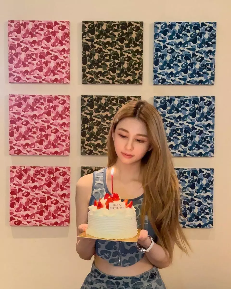 沈月於社交平台分享她於日本慶祝生日的靚相,並留言:「Brithday at Bapeland」。從她分享的照片可見,沈月染了一頭金髮,十分搶眼。她身穿一件迷彩吊帶小背心配襯一條短裙仔,大曬小纖腰。狂野新Look有別於過往的清純形象。