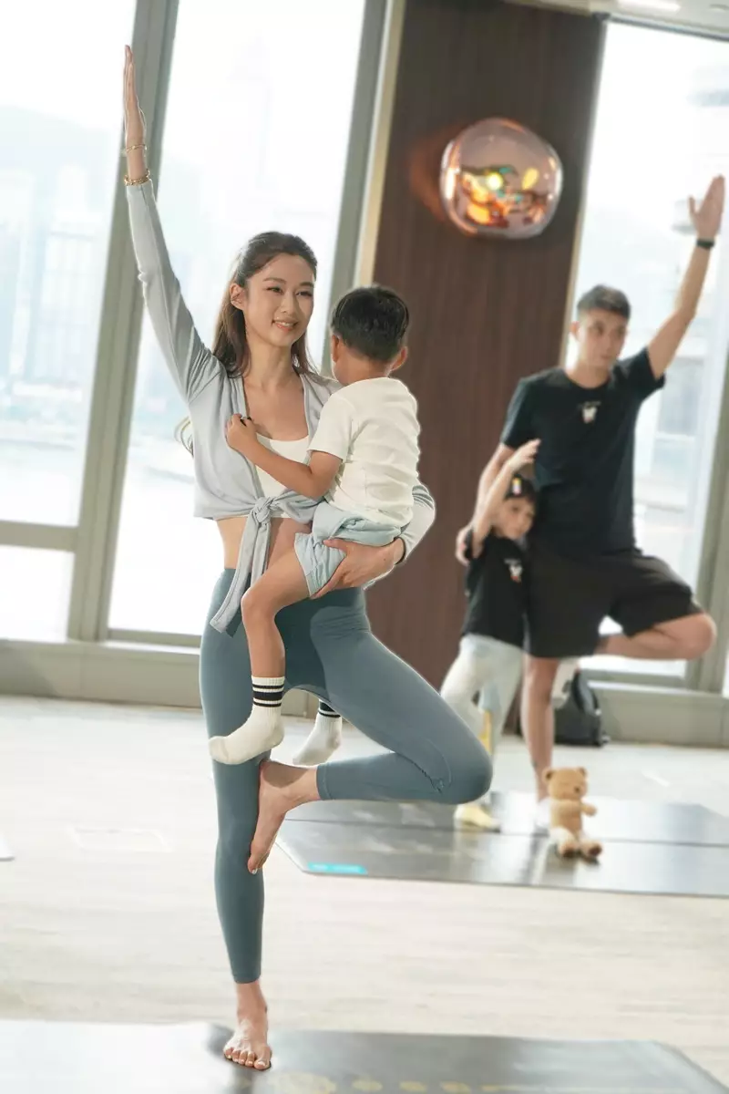 岑麗香首次同囝囝一起做瑜伽,但因為他們剛從加拿大回港,有少少jet lag的囝囝全程攬實香香。
