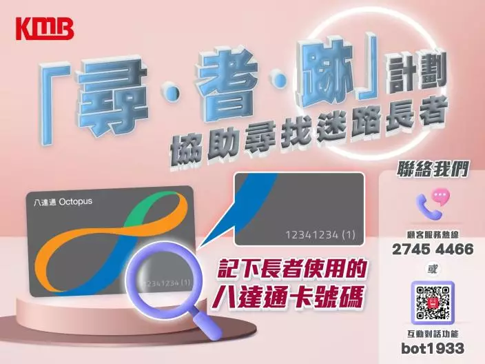 九巴呼籲家中有認知障礙症長者的家屬,預先保留長者的八達通號碼,一旦長者走失,可成為尋人的重要線索。