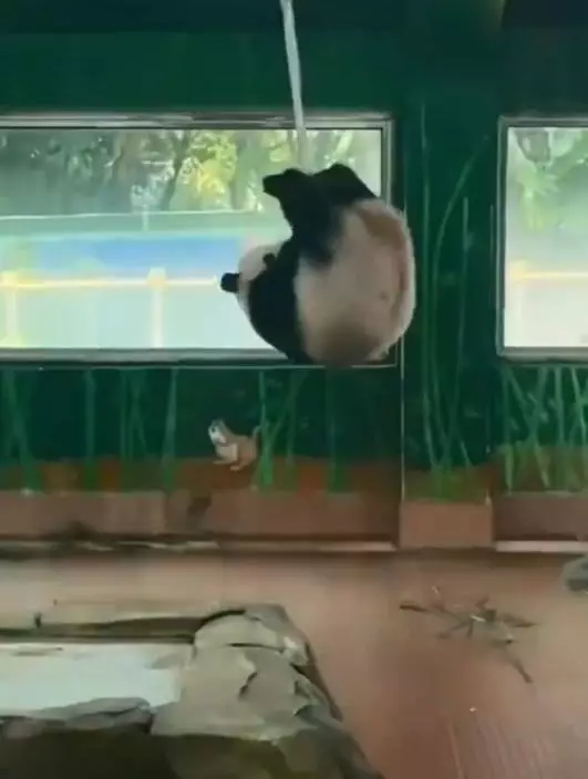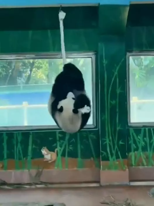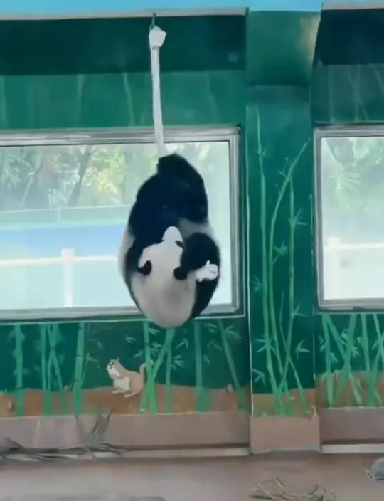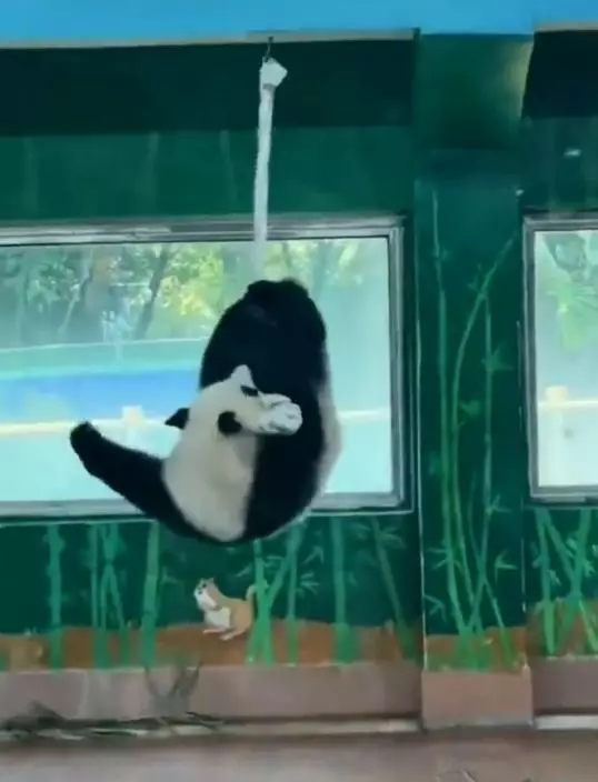 廣州一大熊貓在館內花式轉圈做「空中瑜伽」,引起網友熱烈討論。