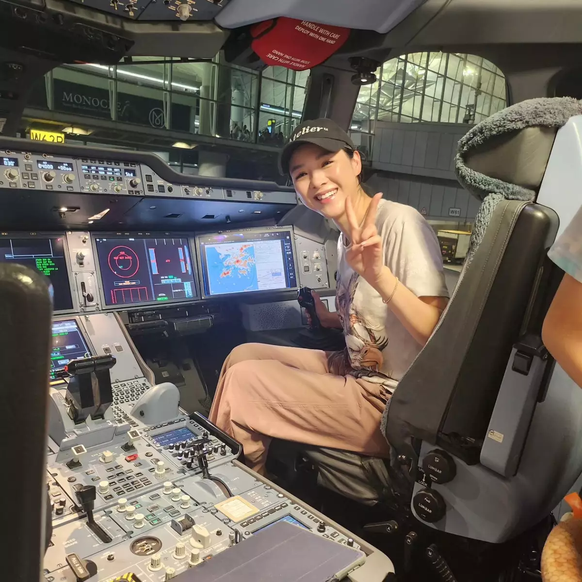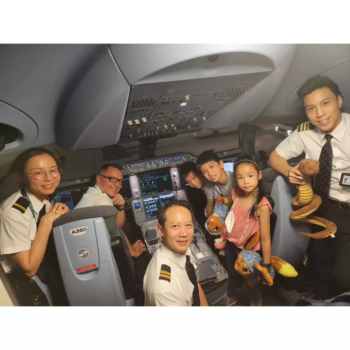 陳茵媺唔單只在社交平台分享了陳豪接機的溫馨合照,亦分享了自己在飛機上的一段「奇遇」,原來陳茵媺和子女在飛機時竟然獲得在飛機駕駛艙影相留念的機會,而小朋友們仲可以坐在駕駛位置和四位機長合照,陳茵媺激動分享:「Thank you to the amazing #Captain and Crew for inviting us into the cockpit after safely landing. After 16 hours of flying, it sure was a treat for my kiddos and I. What a great learning experience!(感謝超棒的機長和空姐在安全降落後邀請我們進入駕駛艙。 飛了16個小時後,這肯定是給我的孩子和我的款待,多麼棒的學習體驗。)」
