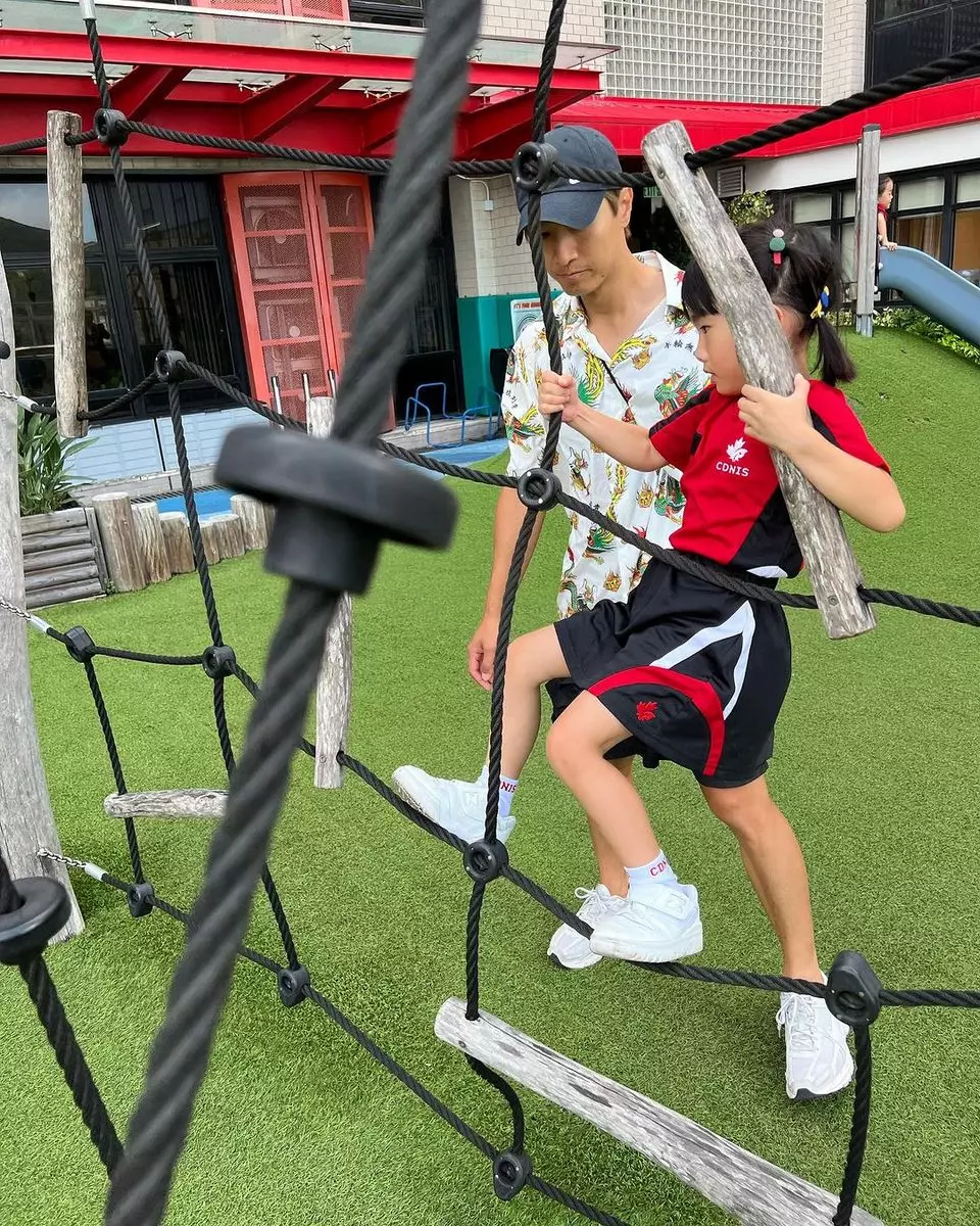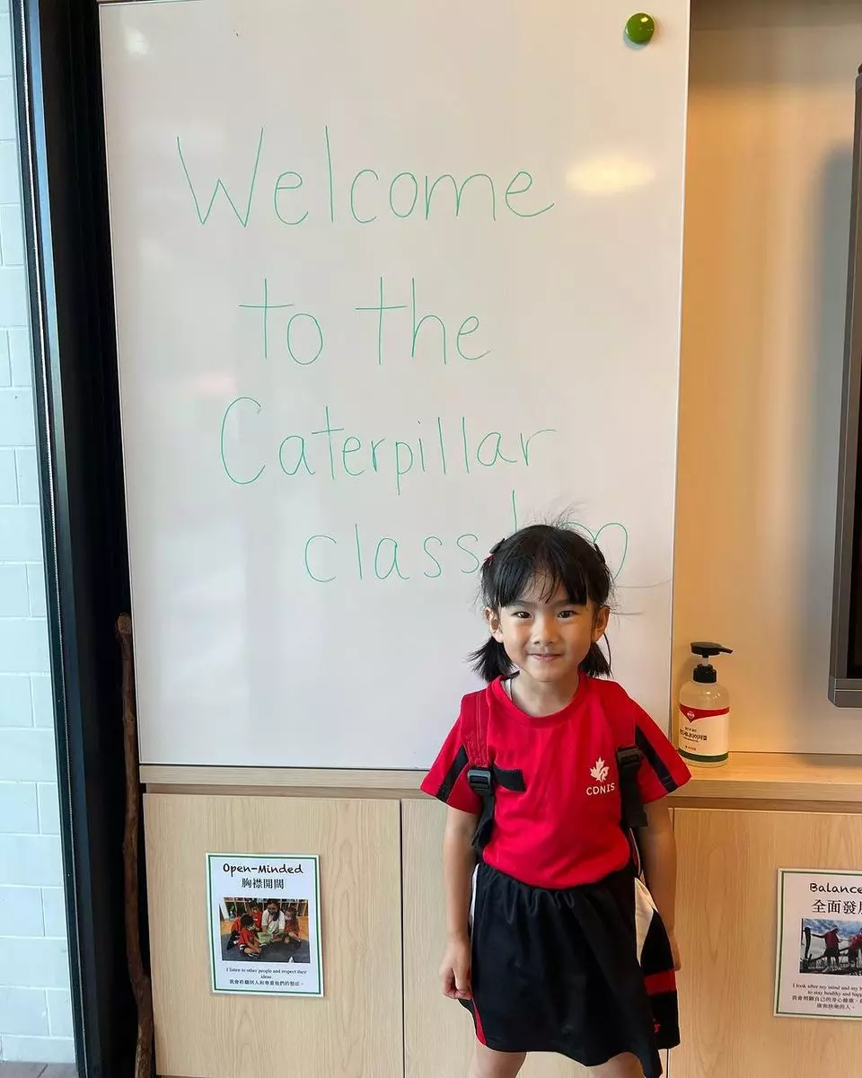 陳柏宇(Jason)及太太符曉薇(Leanne)為女兒陳羿辰(Abigail)開設IG帳戶,會不時分享女兒及一家生活照。二人近日於Abigail的IG分享多張女兒的開學照。相中的Abigail身穿加拿大國際學校(CDNIS)的運動校服,網民見到紛紛留言問Abigail是否已由原本就讀的九龍塘香港創價幼稚園轉到每年學費要20萬元的加拿大國際學校升學。