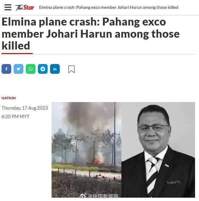 另外,據馬來西亞媒體援引警方消息稱,墜機事故其中一名死者為該國彭亨州行政議員喬哈里•哈倫。當地媒體稱,該州州議會議長在社交媒體上證實了這一消息。
