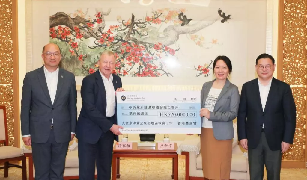 馬會行政總裁應家柏8月18日前往中聯辦出席捐贈儀式,並表達對京津冀及東北地區災情的關心和慰問。款項由中聯辦副主任盧新寧,以及宣傳文體部副部長張國義代表接受。
