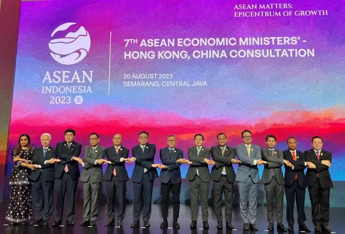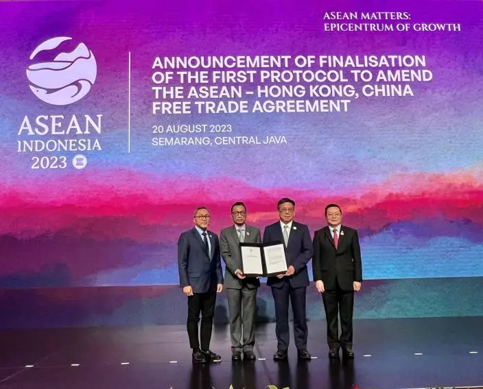 丘應樺20日與印尼貿易部部長在印尼三寶壟共同主持第七屆中國香港─東盟經貿部長會議,討論香港與東盟《自由貿易協定》及《投資協定》的實施情況相關事宜,並就區域和環球經濟最新發展交換意見。
