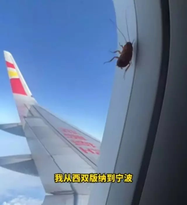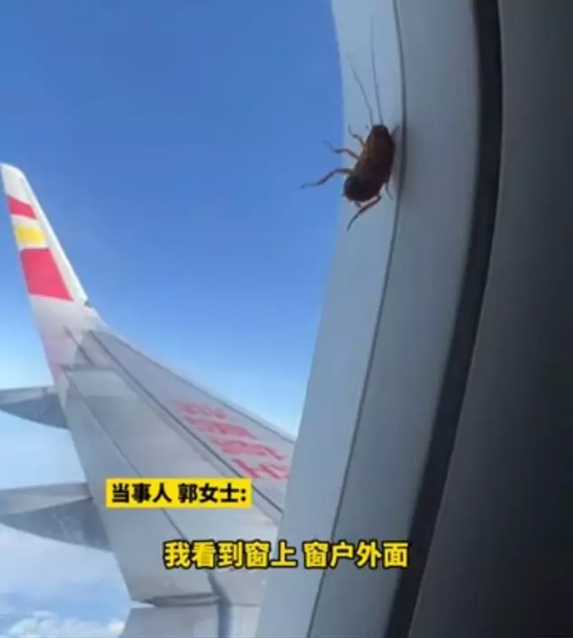 據內媒報導,內地一名女乘客日前搭乘飛機由雲南西雙版納前往浙江寧波,搭乘期間驚見一隻蟑螂緊緊地趴在窗戶玻璃上,女子表示當下確實被嚇到,隨後她對於蟑螂如何爬上飛機感到十分好奇,對此她並沒有告知空務員,而是拿出手機拍攝記錄,觀察蟑螂的一舉一動。