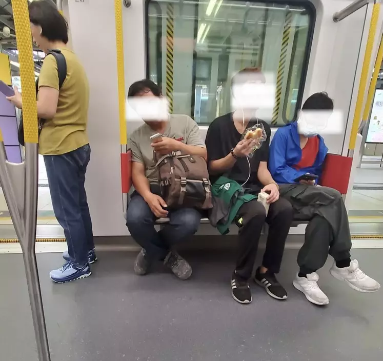 該港女於Facebook群組「大埔 TAI PO」發文兼上載照片,照片所見一名穿黑衣打扮及帶著耳機的後生仔坐在車廂內吃麵包,同時亦拿著紙包飲品。樓主見狀非常不滿,表示「車內不准飲食,仲要係一個後生仔,呢個世界真係變了」,更拍下對方的照片,放上網公審。