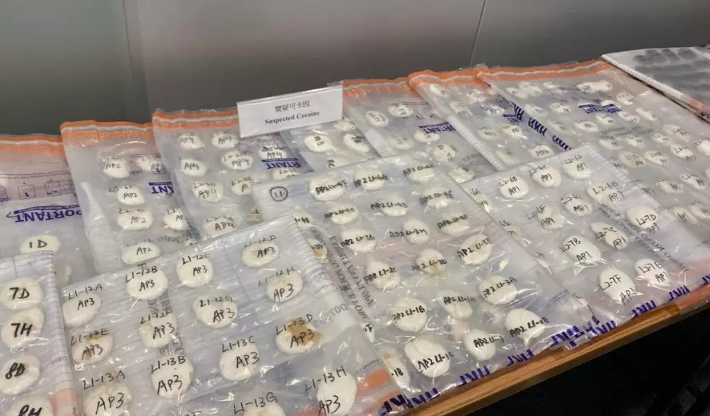 警方展示檢獲的懷疑可卡因。警方提供圖片