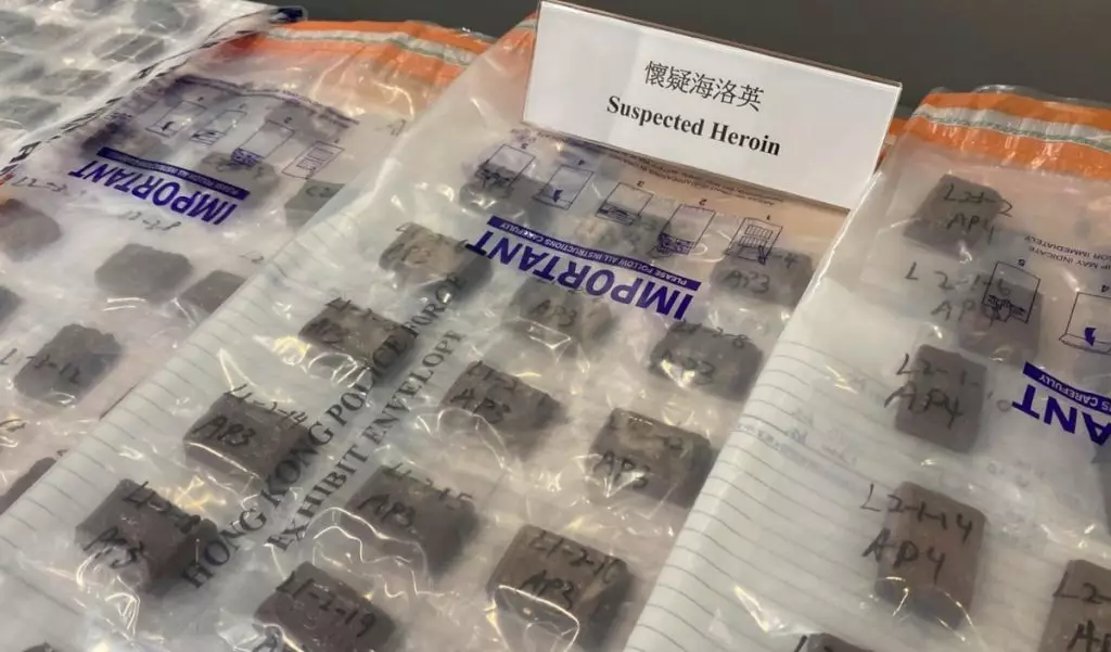 警方展示檢獲的懷疑海洛英。警方提供圖片