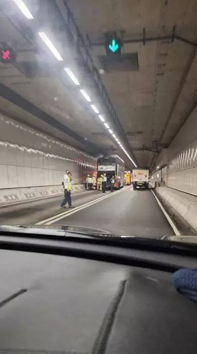 屯赤隧道有行駛中的巴士車胎起火,車長停車疏散車上乘客,事件中一人需要送院。